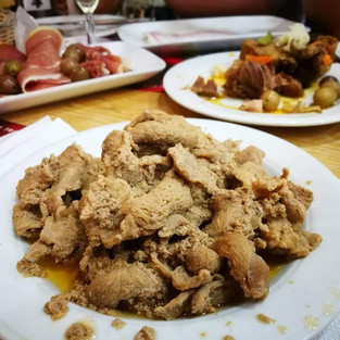 Voltamo-nos agora para os rojões... Um pratinho muito bem composto em termos de quantidade e apresentação com azeitonas e pickles a decorar o prato e ainda umas tripas enfarinhadas e uns bocadinhos de redenho a acompanhar. O sabor tipico do rojão conjugado com uma carne super tenra, ajudou a melhorar a minha experiência neste local, que culminou com 2 portentos de sabor: um prato de redenho super crocante e quentinho e umas tripinhas enfarinhadas acabadinhas de fritar bem fininhas tal como eu gosto... Costuma-se dizer que devemos deixar o melhor par o fim, e assim fizemos. Que categoria!!!! Estes 3 últimos pratos valeram por tudo o resto e fizeram-me esquecer a desilusão do restante...